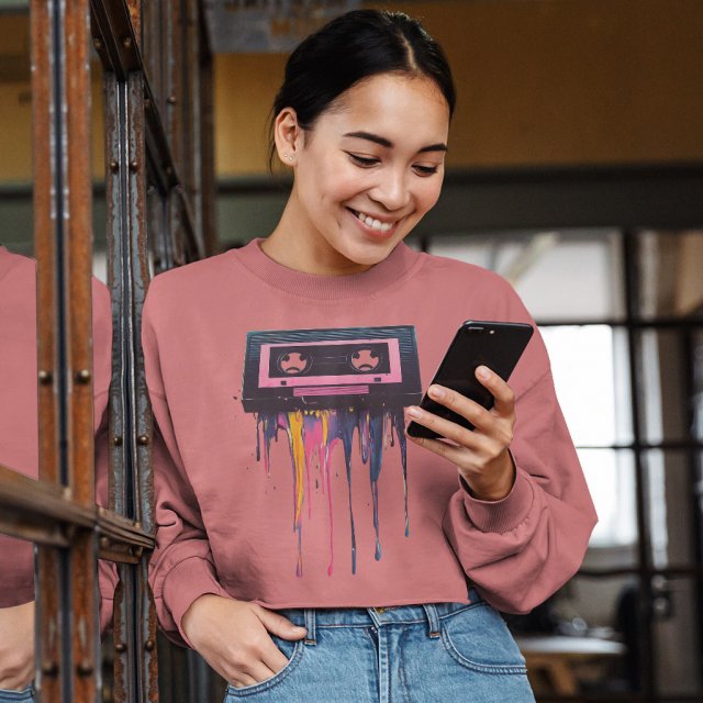 90s Music Cassette Cropped Long Sleeve Sweatshirt