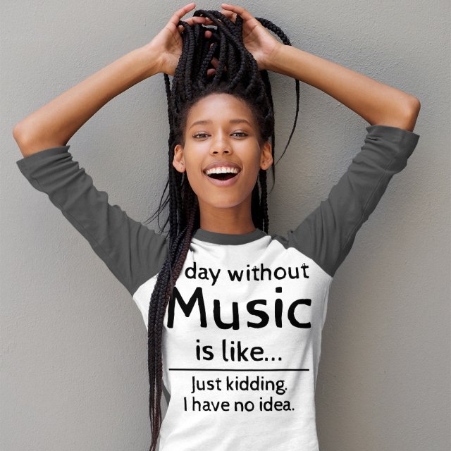 A Day Without Music Is Like Baseball T-Shirt is proudly made with 7x less water than average manufacturers, in recycle-friendly facilities that also guarantee zero sweatshop conditions. Singer 3/4 Sleeve is designed and printed in California.