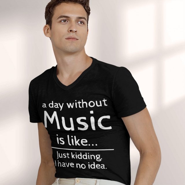 A Day Without Music Is Like V-Neck T-Shirt is proudly made with 7x less water than average manufacturers, in recycle-friendly facilities that also guarantee zero sweatshop conditions