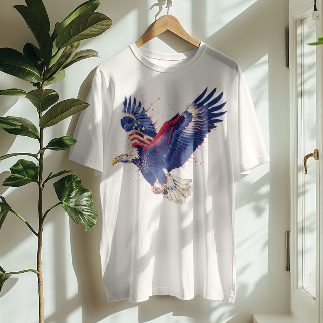 Bald Eagle Patriotic T-Shirt is no ordinary piece of clothing. Its taped neck and shoulders, double-needle sleeve and bottom hems, and quarter-turned construction provide a retail fit for clothing that’s true to size. American Spirit Heavy Cotton Tee is Designed and printed in California.