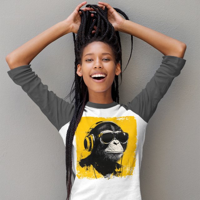 Cool Monkey Baseball T-Shirt is proudly made with 7x less water than average manufacturers, in recycle-friendly facilities that also guarantee zero sweatshop conditions. Gift for DJ 3/4 Sleeve is designed and printed in California.