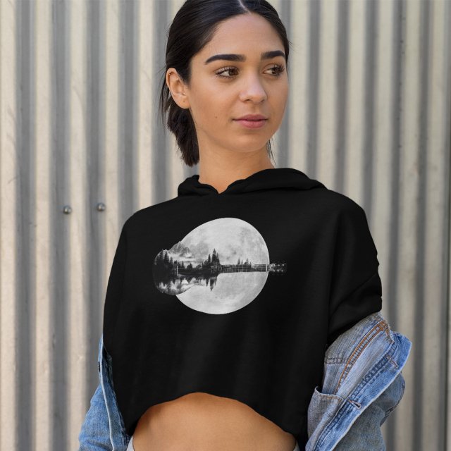 Guitar Lake Shadow Full Moon Women’s Cropped Hoodie