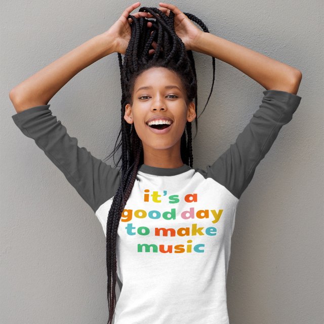It’s A Good Day To Make Music Baseball T-Shirt is proudly made with 7x less water than average manufacturers, in recycle-friendly facilities that also guarantee zero sweatshop conditions. Music Teacher 3/4 Sleeve is designed and printed in California.