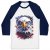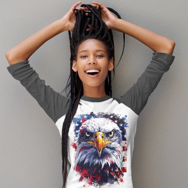 Patriotic American Eagle Baseball T-Shirt is proudly made with 7x less water than average manufacturers, in recycle-friendly facilities that also guarantee zero sweatshop conditions. USA 3/4 Sleeve is designed and printed in California.