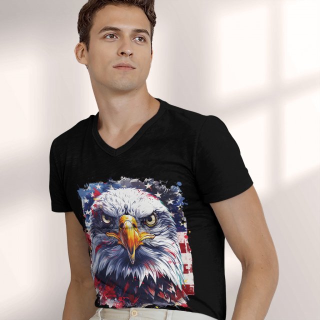 Patriotic American Eagle V-Neck T-Shirt is proudly made with 7x less water than average manufacturers, in recycle-friendly facilities that also guarantee zero sweatshop conditions
