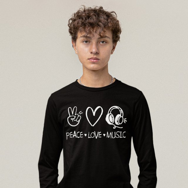 Peace Love Music Long Sleeve T-Shirt is proudly made with 7x less water than average manufacturers, in recycle-friendly facilities that also guarantee zero sweatshop conditions. Gift For Music Lover T-Shirt is designed and printed in California.