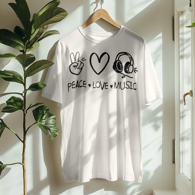 Peace Love Music T-Shirt is no ordinary piece of clothing. Its taped neck and shoulders, double-needle sleeve and bottom hems, and quarter-turned construction provide a retail fit for clothing that’s true to size. Gift For Music Lover Heavy Cotton Tee is Designed and printed in California.