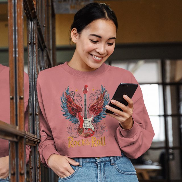 Rock & Roll Guitar Cropped Long Sleeve Sweatshirt