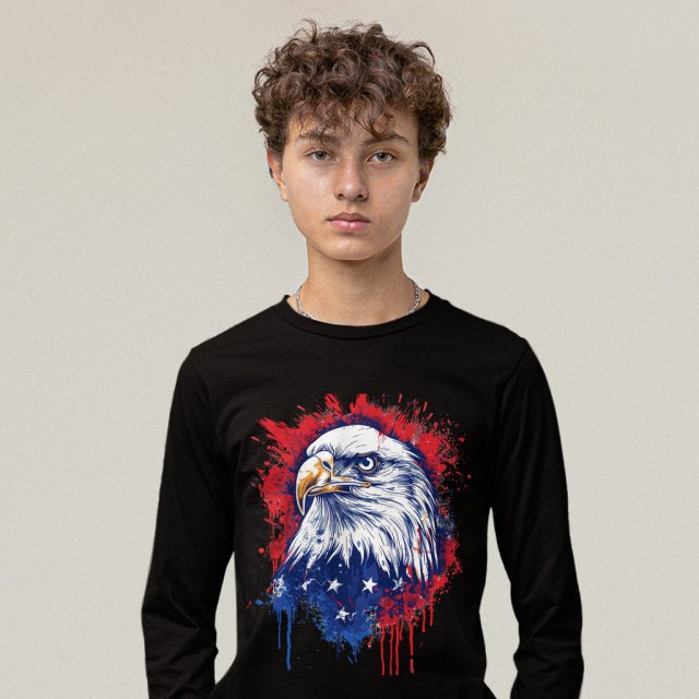 USA Bald Eagle Long Sleeve T-Shirt is proudly made with 7x less water than average manufacturers, in recycle-friendly facilities that also guarantee zero sweatshop conditions. Freedom T-Shirt is designed and printed in California.