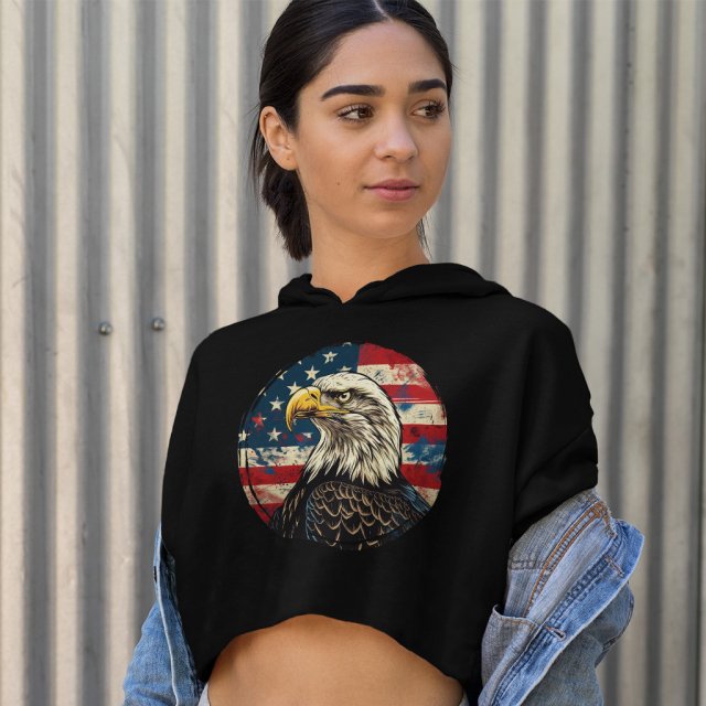USA Eagle Women’s Cropped Hoodie is proudly made with 7x less water than average manufacturers, in recycle-friendly facilities that also guarantee zero sweatshop conditions. 4th Of July Women’s Cropped Hoodie is designed and printed in California.