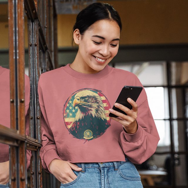 USA Flag Eagle Cropped Long Sleeve Sweatshirt