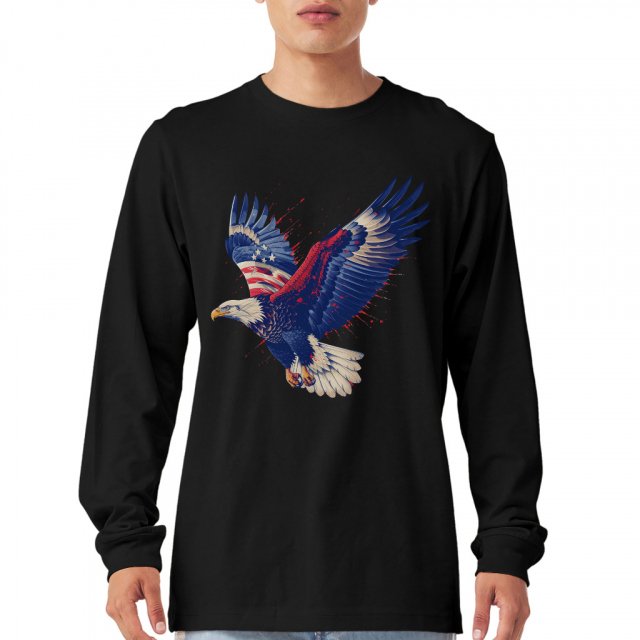 USA Flag Eagle Sweatshirt is made from a 50% U.S. Cotton/50% Polyester blend, this warm 8.0 oz sq/yd classic fit style looks great and makes a great canvas for decorating. USA Flag Eagle Sweatshirt is designed and printed in California.