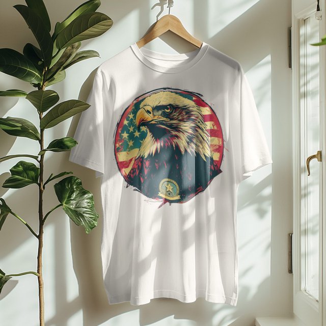 USA Flag Eagle T-Shirt is no ordinary piece of clothing. Its taped neck and shoulders, double-needle sleeve and bottom hems, and quarter-turned construction provide a retail fit for clothing that’s true to size. Stars and Stripes Heavy Cotton Tee is Designed and printed in California.