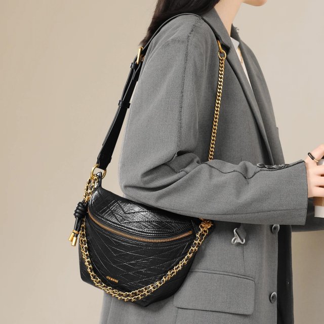 - 2 Chain Shoulder Handles for easy carrying and a touch of luxury