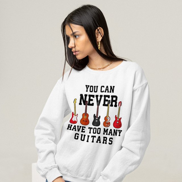 Look no further than You Can Never Have Too Many Guitars Sweatshirt! This comfy go-to is ideal for those